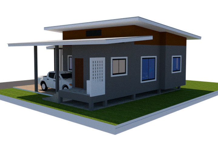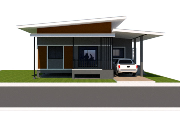 ดีไซน์: หลังคาทรงจั่วหรือเพิงหมาแหงน เน้นการใช้สีขาว สีเทาอ่อน และโทนสีไม้อ่อน/น้ำตาล ฟังก์ชันการใช้งาน: เน้นห้องโถงกว้างและครัวในตัว พื้นที่ใช้สอยคุ้มค่า เหมาะสำหรับการพักผ่อน